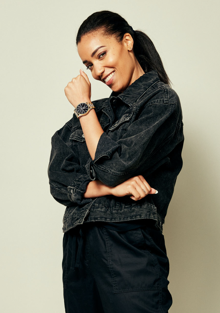 Couronne en or personnalisée, bracelet à trois maillons effilés en acier inoxydable massif avec accents dorés et fermoir double sécurité. Une lunette dorée accentuée et un bracelet à micro-ajustement vous offrent le look et l'ajustement que vous attendez du savoir-faire Nixon.