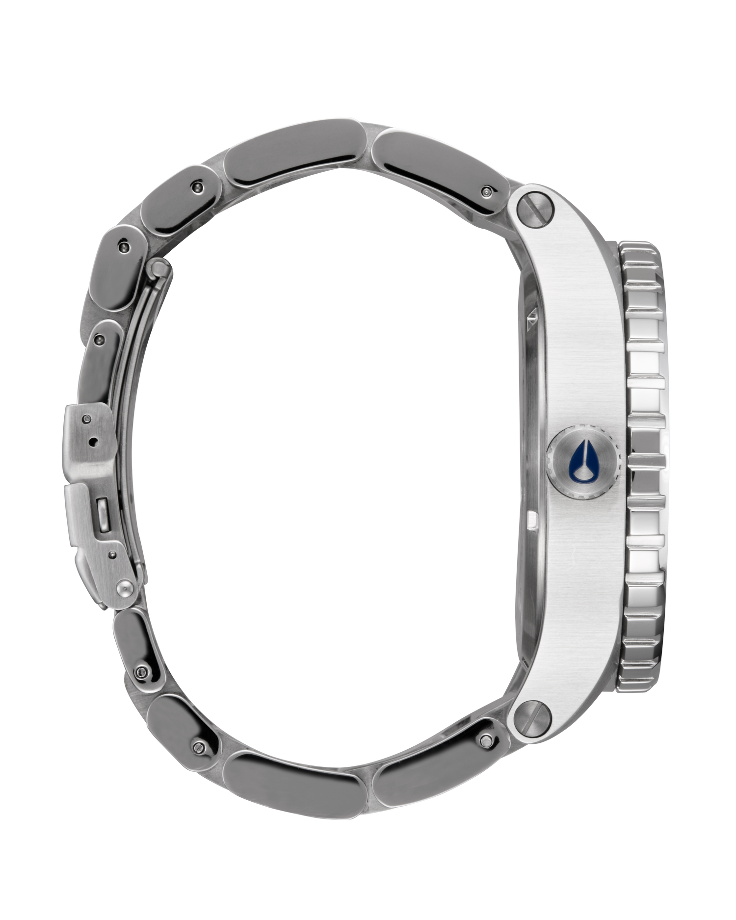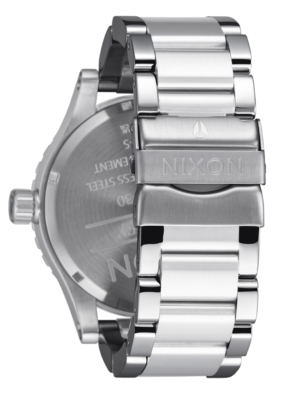 Boîtier personnalisé en acier inoxydable massif de 51 mm avec une étanchéité de 300 mètres / 30 ATM. Comprend une lunette tournante unidirectionnelle avec minuterie de compte à rebours, un verre minéral durci, une couronne vissée, un fond de boîtier vissé en acier inoxydable et des cornes à goupilles vissées.