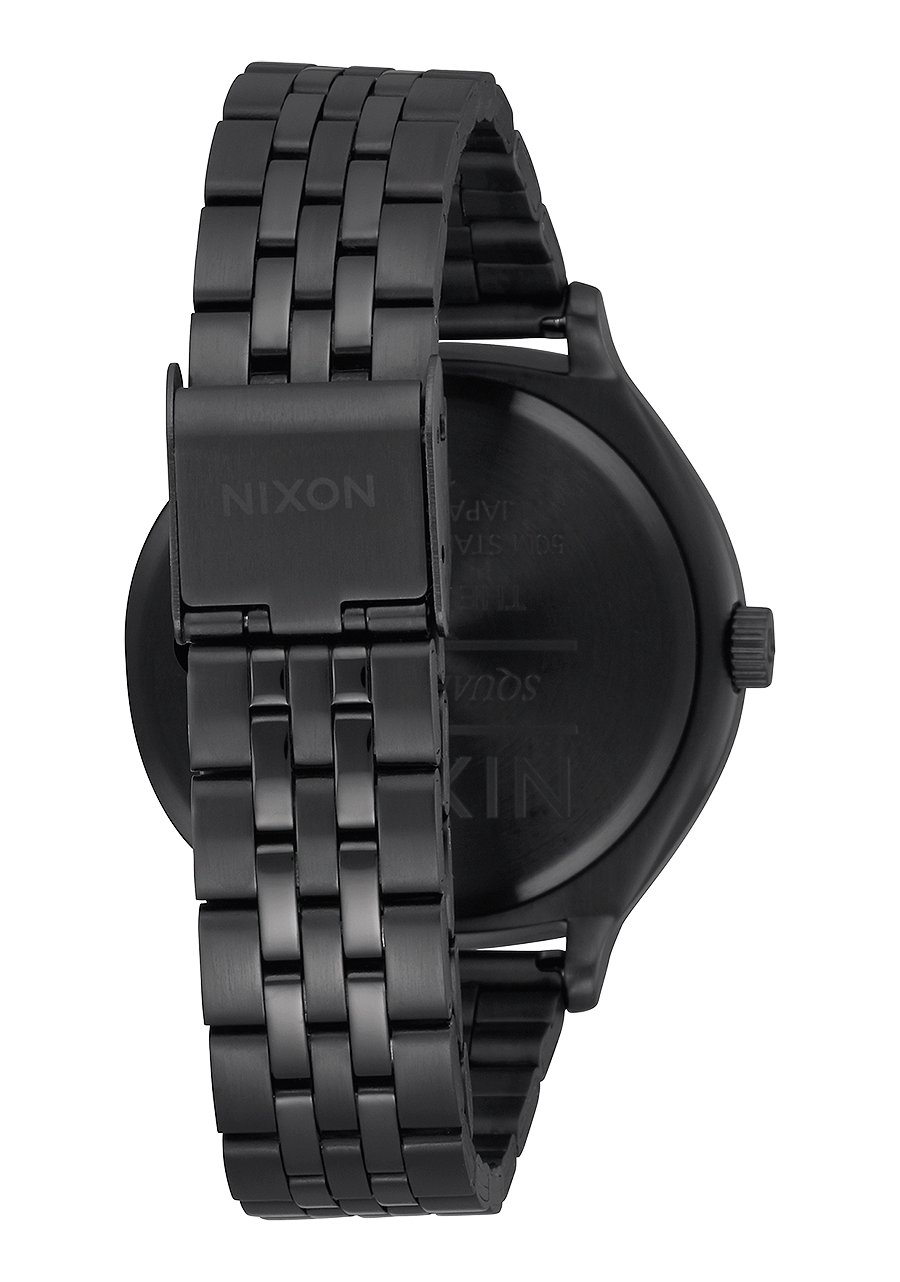 38 mm, 50 mètres / 5 ATM, boîtier personnalisé en acier inoxydable massif, verre minéral durci, fond de boîtier emboîtable en acier inoxydable et anses à goupille ressort.