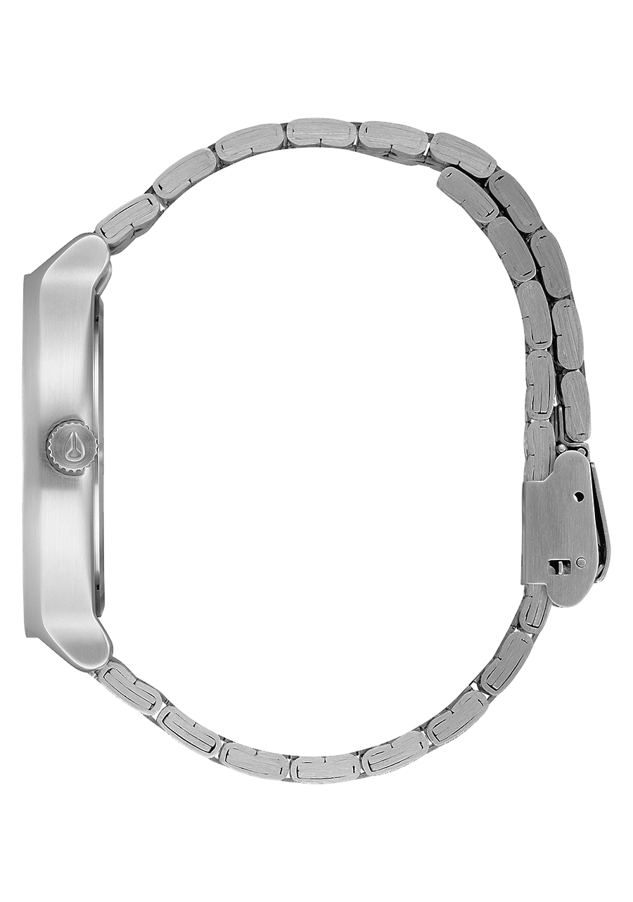 38 mm, 50 mètres / 5 ATM, boîtier personnalisé en acier inoxydable massif, verre minéral durci, fond de boîtier emboîtable en acier inoxydable et anses à goupille ressort.