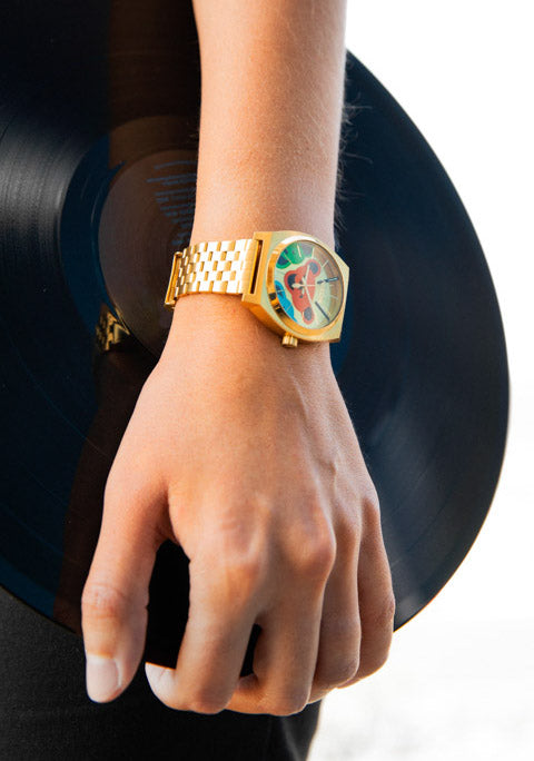 Des ours en marche, des éclairs à 13 pointes, des roses et des mains de squelette ornent les cadrans tandis que les bracelets de style bijou sur mesure se ferment pour s'adapter à votre poignet.