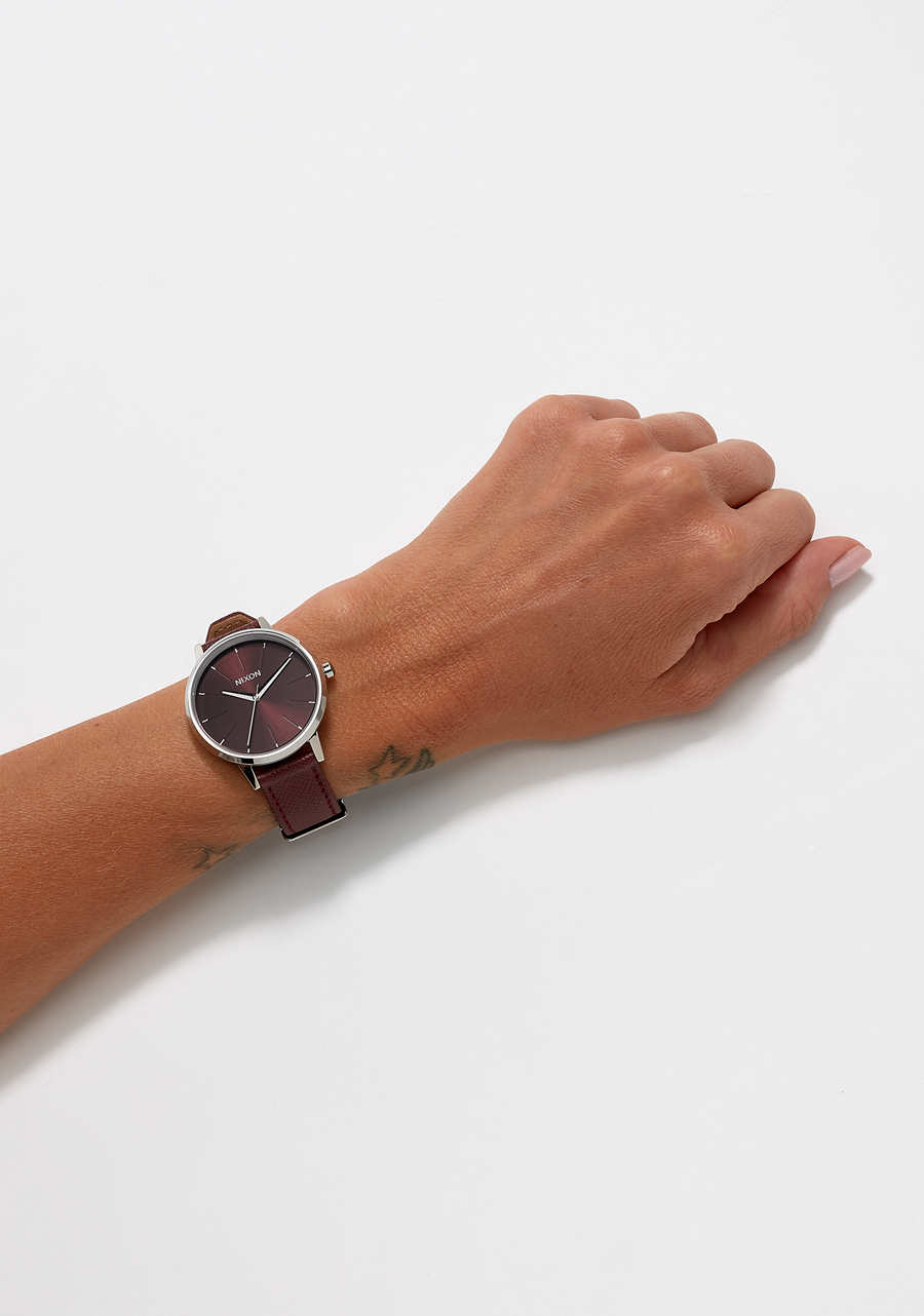 Le cadran présente des index bâtons gravés et imprimés ainsi que des aiguilles moulées sur mesure.