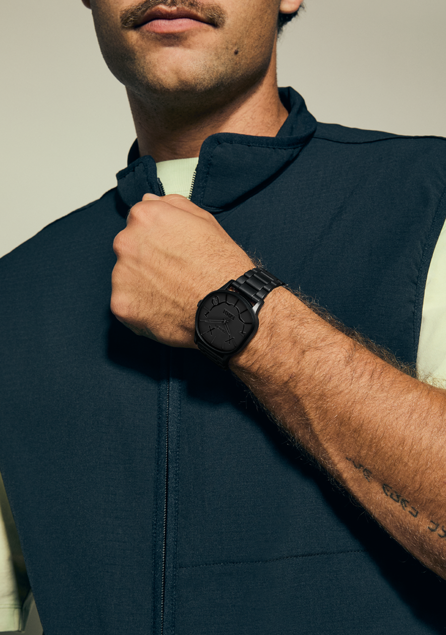 Un groupe de cette envergure mérite une montre hors du commun. La collection Nirvana met en avant la Sentry Wobble, avec un boîtier courbé pour épouser la forme de leur célèbre logo smiley. Accompagnant la Wobble, la Sentry Leather arbore un bracelet à la texture de pull douillet et un cadran en rayons de soleil avec des lettres inclinées Nirvana en guise d'index. Enfin, le profil minimaliste de la Time Teller fait sensation avec un smiley noir sur noir et le logo Nirvana jaune ainsi que la typographie caractéristique.