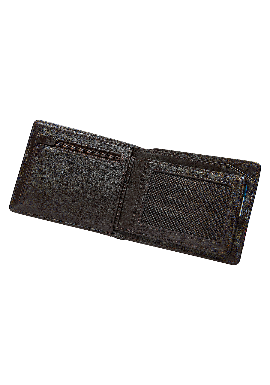 Dix emplacements pour cartes, poche pour billets facile d’accès, poche zippée pour les pièces et porte-carte d’identité amovible à deux volets : autant d’éléments qui vous permettront d’organiser vos finances sans tracas.