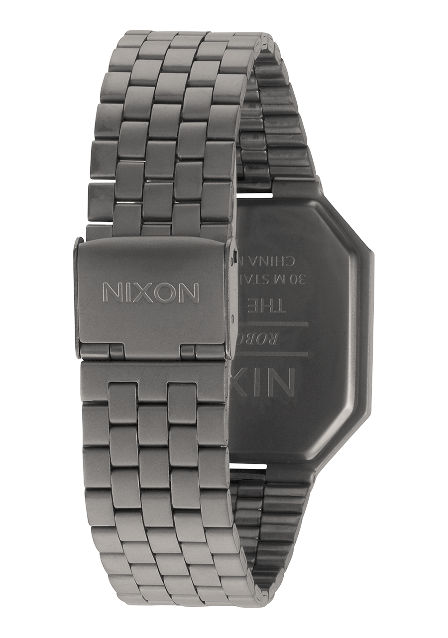 La montre Nixon Re-Run dispose d'un boîtier en acier inoxydable massif et d'un cristal minéral trempé, assurant une durabilité pour un port quotidien. Le bracelet est un bracelet en acier inoxydable de style bijou à 5 maillons avec une boucle de verrouillage en acier inoxydable, garantissant un ajustement sécurisé. La montre est conçue pour être suffisamment durable pour les porteurs actifs, avec des fonctionnalités telles que des poussoirs en polyuréthane moulé par injection pour améliorer son design rétro et sa fonctionnalité.
