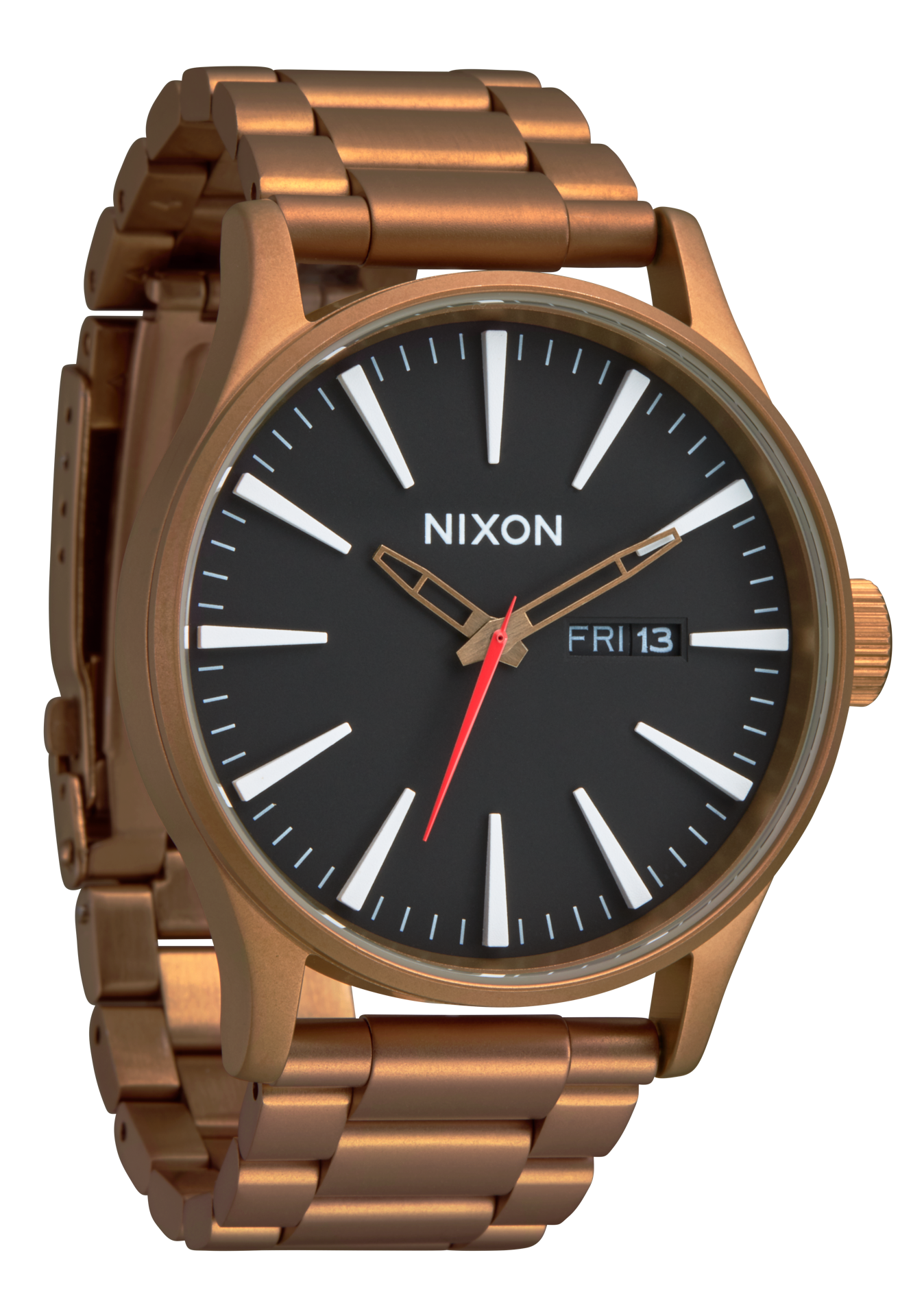 Le cadran présente des index bâtons appliqués, une minuterie imprimée et des aiguilles moulées sur mesure.
