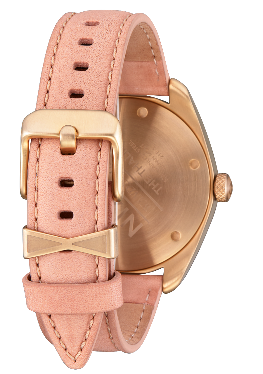 Du cuir tanné végétal aux surpiqûres extérieures, en passant par le passant personnalisé en acier inoxydable et la boucle gravée Nixon, la silhouette élancée de Thalia regorge de détails subtils.