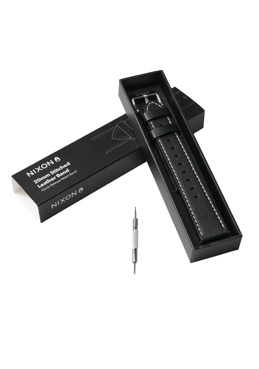 Just like our standard leather band, kick it up a notch with 20mm Stitched Leather Band. A contrasted stitch and upgrade to first class. It's 20mm tapered down for a balanced fit with calf suede backing.