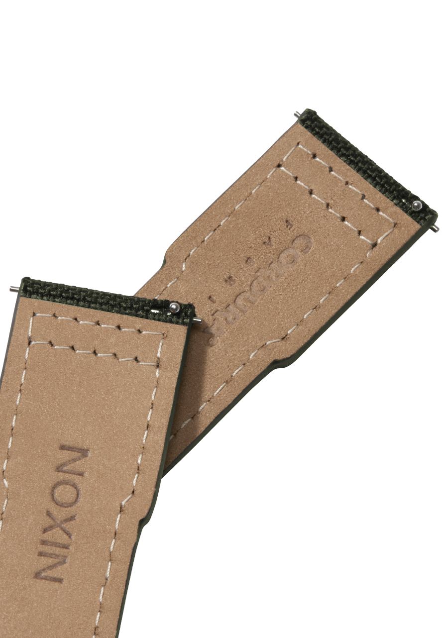 Time is what you have with this band. The 23mm Canvas Band is built with Codura® canvas on the outside to withstand all the elements, with ultra soft calf suede to keep your comfortable on the inside, it only gets better with time.