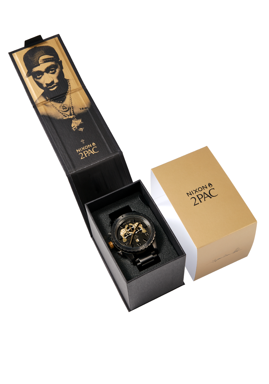 Nixon pays homage to the legacy of Tupac Shakur in a fusion of artistry and elegance. This limited-edition collection of watches merges the custom craftsmanship of Nixon with Tupac’s timeless style.