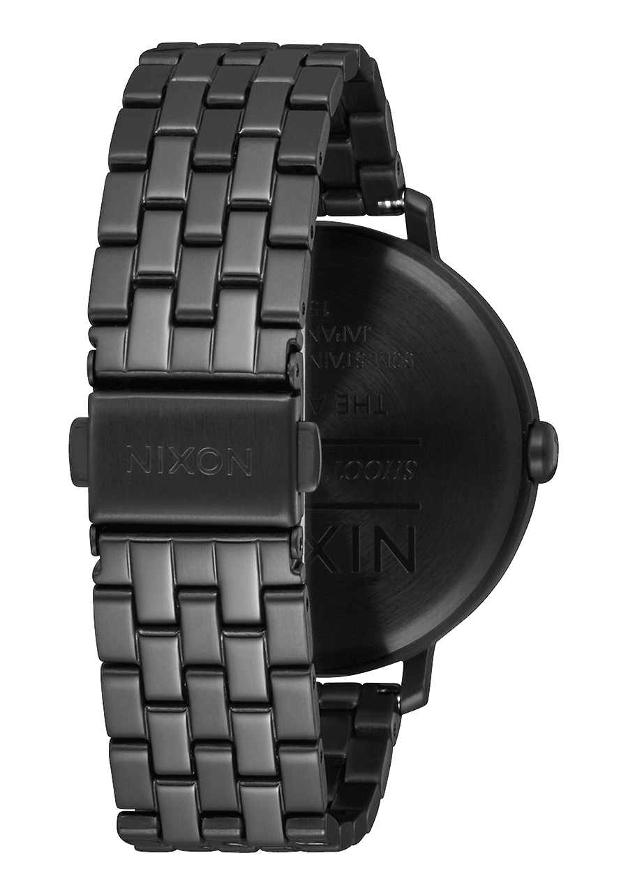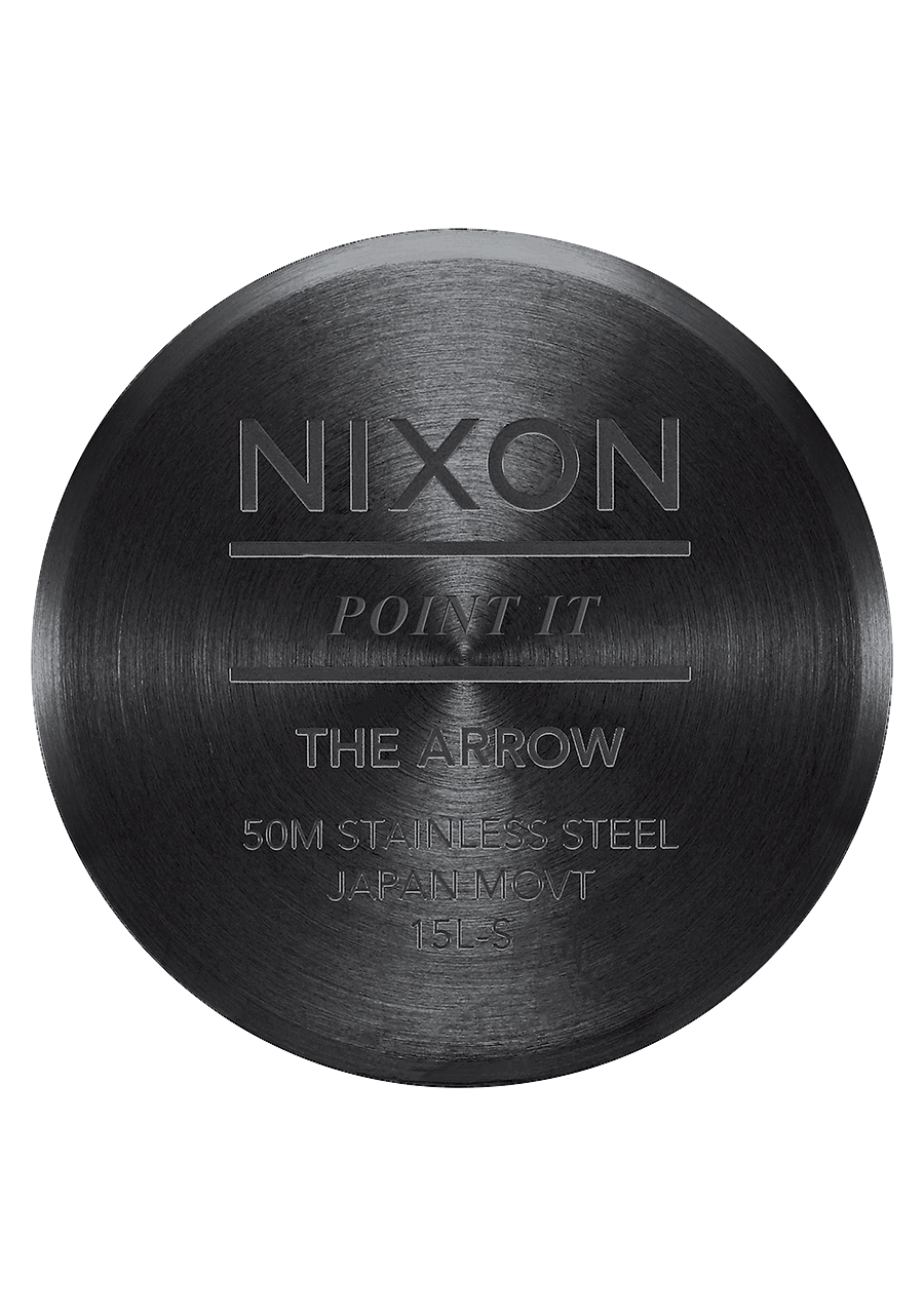 Dial features applied Nixon wordmark and hour markers in Arabic and stick format. Also features printed numbers and custom molded hands.