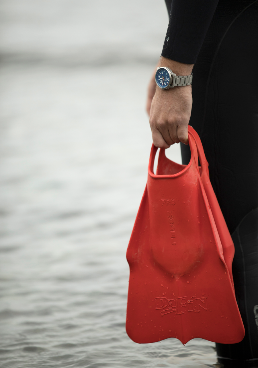 The inner dial ring acts as a calendar, with days of the month tracked by the four-hand movement. Moon phase function lets you know how much moonlight you’ll have to navigate with
