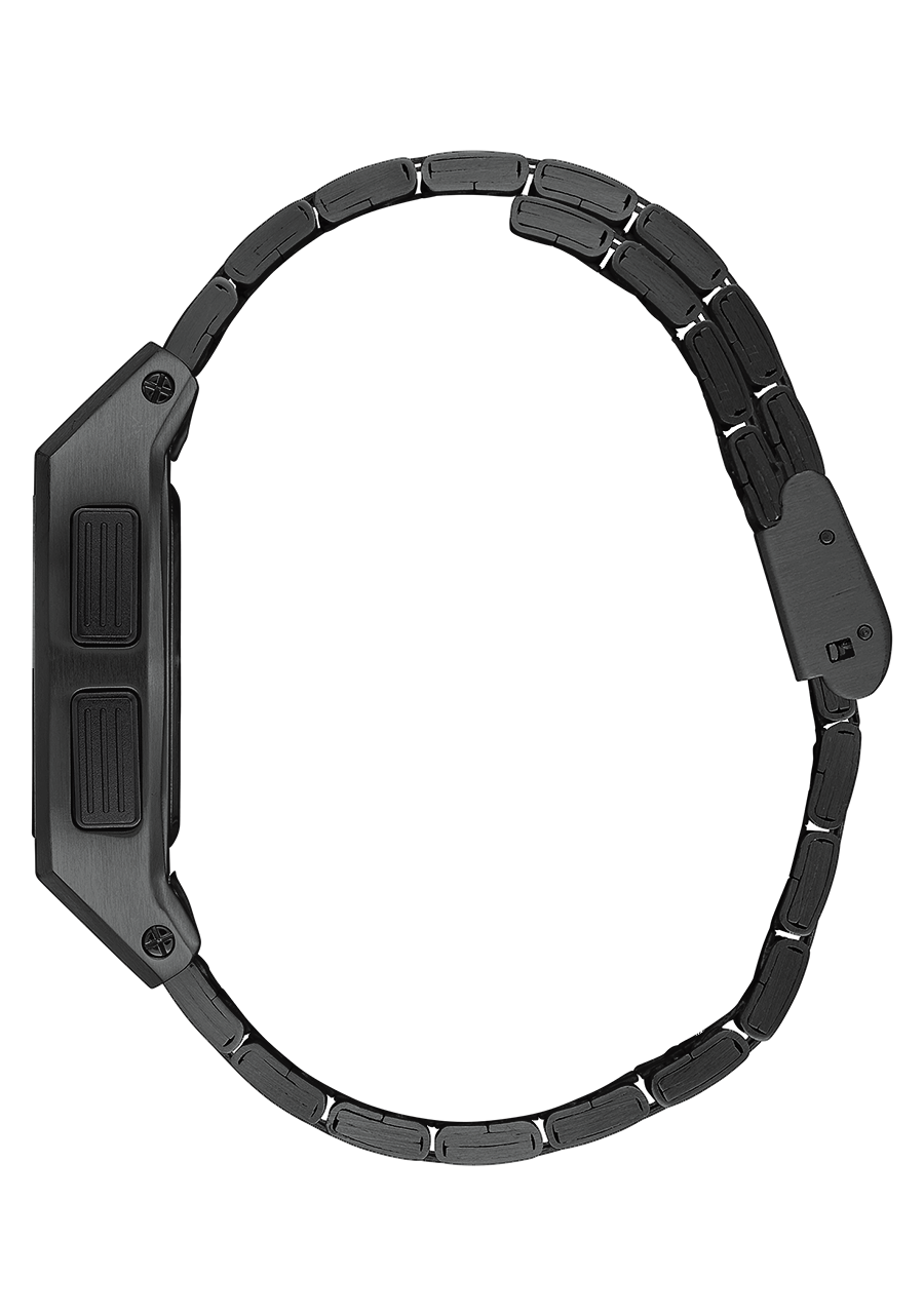 Custom digital module. Functions include time of day (12 hour or 24 hour), date calendar through 2099, EL backlight, chronograph, and customizable countdown timer.