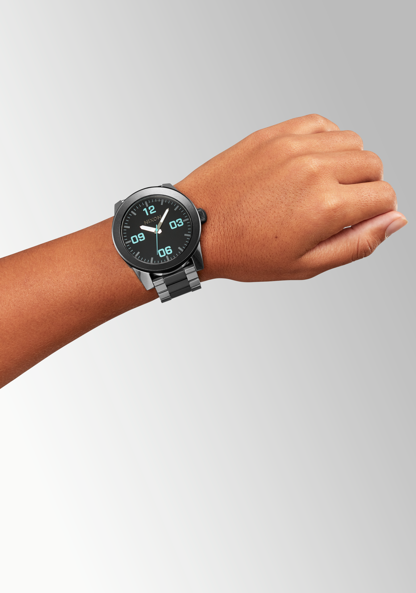 The Nixon Corporal watch uses a Miyota Japanese quartz 3-hand movement.