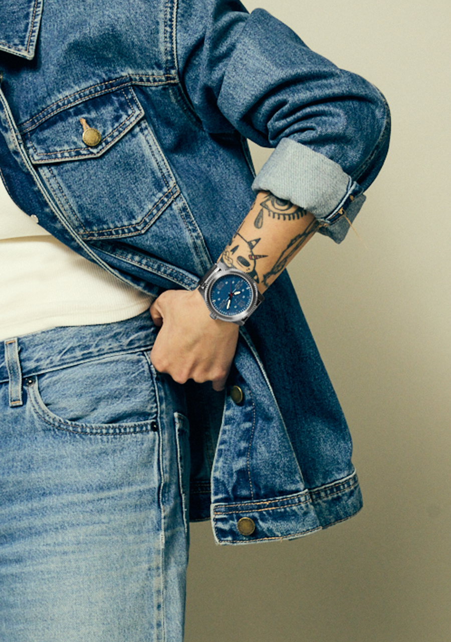 Denim shouldn't be limited to just jeans and jackets. Let your wrist get in on the fun with six standout options to choose from. The 51-30 houses real denim directly on the dial while the Medium Time Teller runs its denim all the way around on the band. Pulling inspiration from trusty rivets, the Corporal, Sentry, and Station Chrono highlight stainless steel construction throughout the case, bezel, and band to allow their deep blue dials to pop like no other. Finally, switch up the material without sacrificing the denim blue look with the Time Teller Leather. Get ready to perfectly match your favorite jacket, jeans or full Canadian tuxedo.
