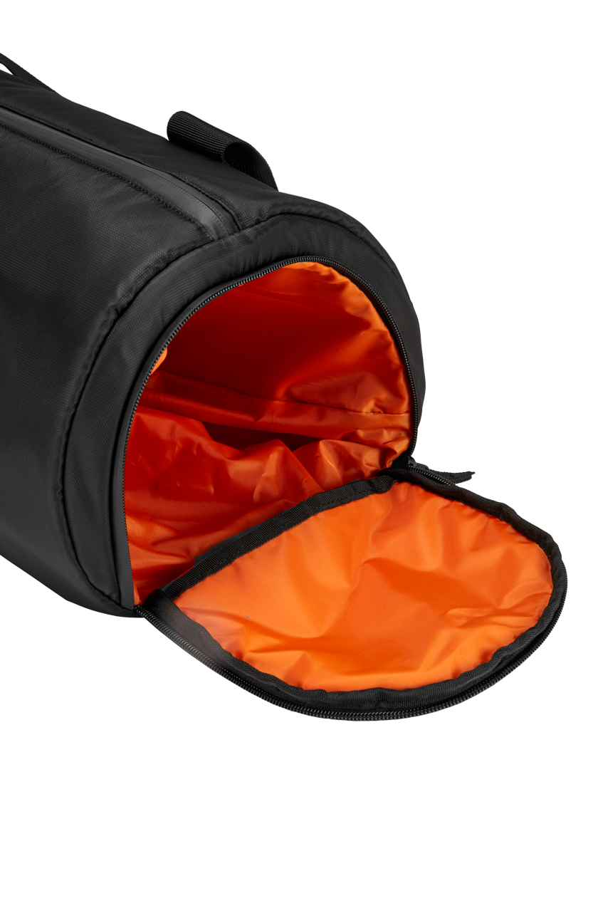 • Over your shoulder thick carry straps • Front pocket with coated zippered closure • Interior pocket with w/key fob • Interior leak proof compartment ideal for shoe, toiletries or wet item storage.