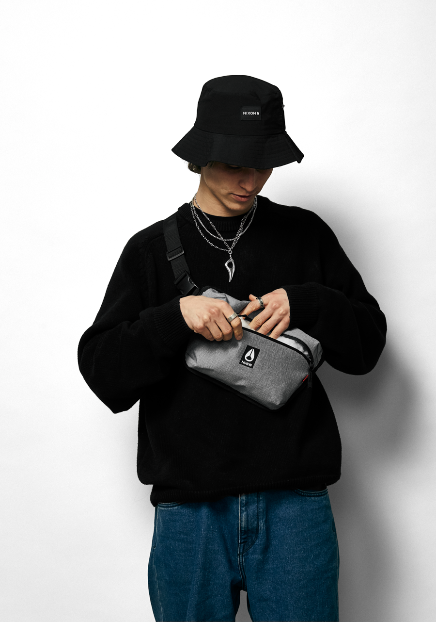 Versatile carry, worn around your hips or over your shoulder. Adjustable webbing strap and buckle. Concealed back zippered pocket. Interior mesh slip-pocket with a key fob. Plus, weather-resistant coated exterior zippers.
