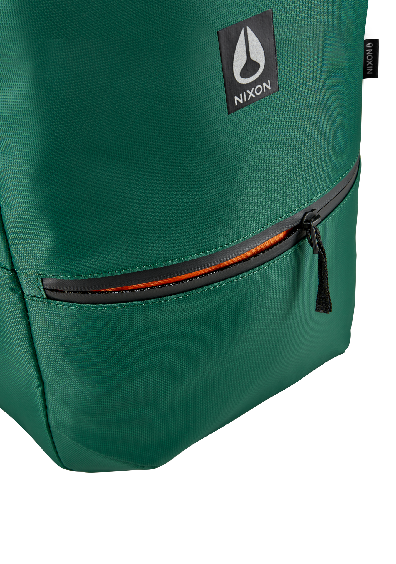 Padded air-mesh back and shoulder straps for comfort and ventilation. Mesh slip-pocket and zippered pocket with a key clip in the main compartment. Zippered front pocket. Weather-resistant coated exterior zippers.