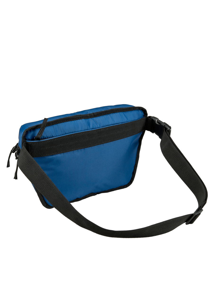 Versatile carry, worn around your hips or over your shoulder. Adjustable webbing strap and buckle. Concealed back zippered pocket. Interior mesh slip-pocket with a key fob. Plus, weather-resistant coated exterior zippers.