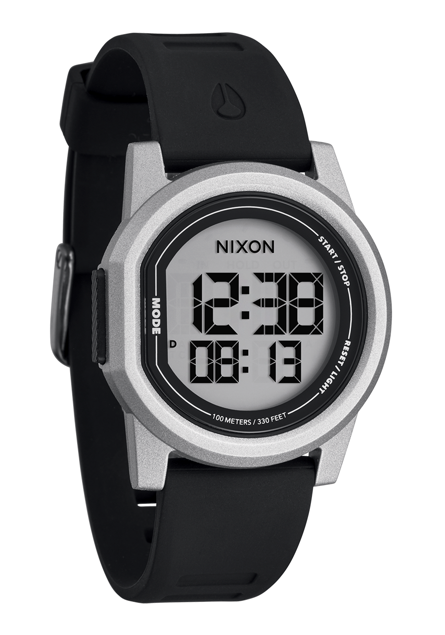 The Nixon Disk watch features large digital readouts that are easy to read, even in the dark thanks to an EL backlight. The three-button navigation system makes accessing its features simple and straightforward, allowing users to quickly control essential functions like day, date, alarm, chronograph, and countdown timer.
