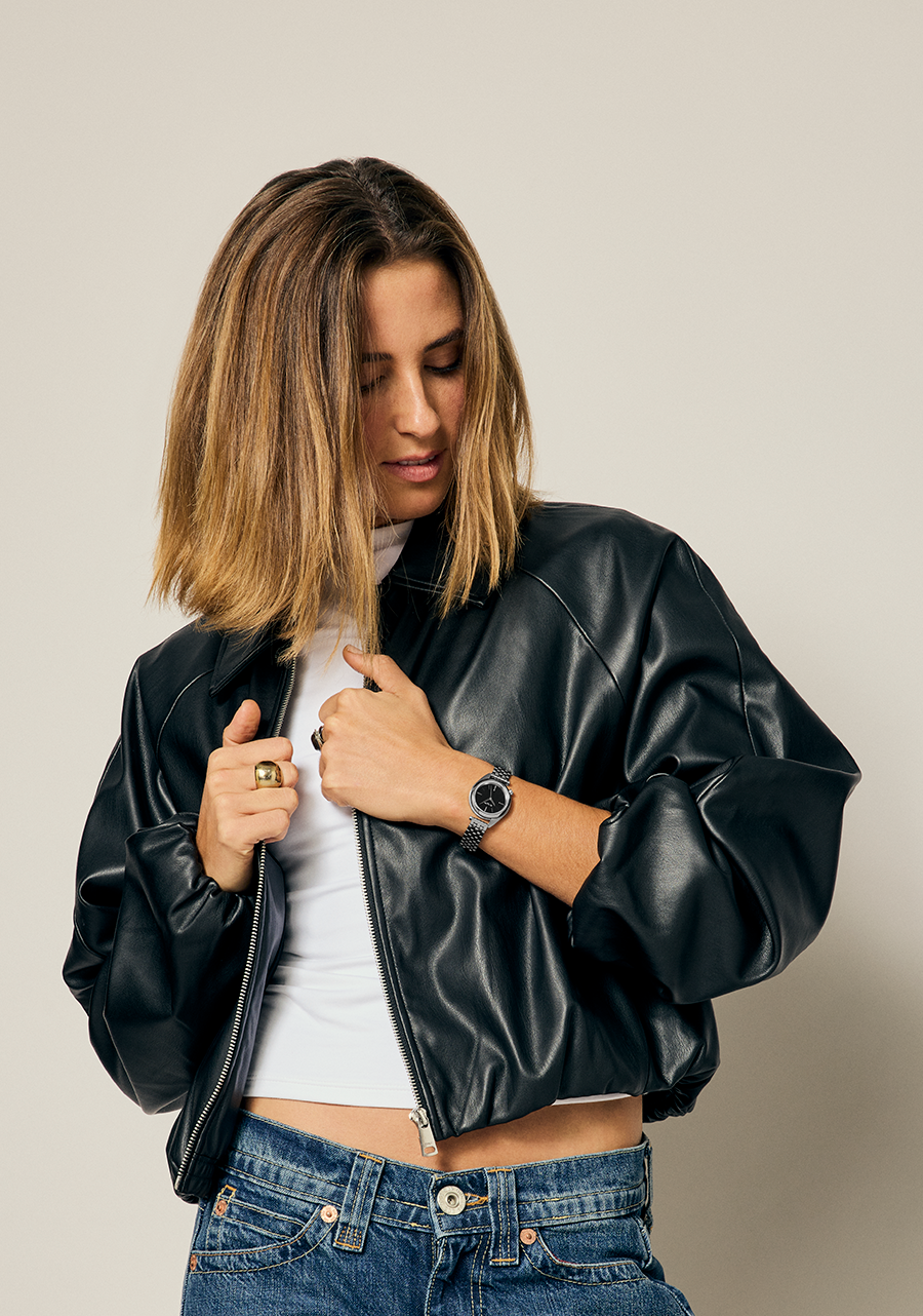 Duality at its finest. The all-new women’s watch, the Eddy, features a 29mm ultra-unique jewelry style case for a chic and delicate look. Its 5-link stainless steel bracelet with a butterfly clasp, 10ATM 100M water resistance, and hardened mineral crystal prove that delicate does not mean fragile. All that’s missing is you.