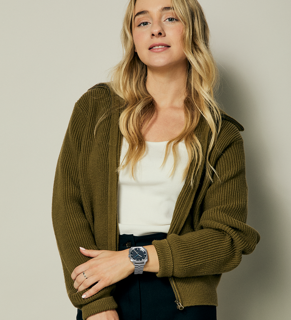 The Fremont 40 comes with a "squircle" case, which means it's somewhere between a square and a circle. The quick-adjust stainless steel bracelet means that you can resize the fit without the need for any tooling.