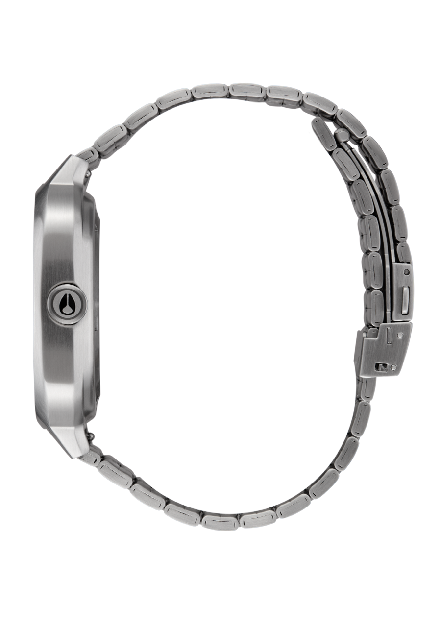 It features a quick-adjust stainless steel clasp that allows tool-free resizing. Simply unbuckle the watch and find the small panel with the "NIXON" wordmark on it. Flip that up and you'll be able to adjust the bracelet size.