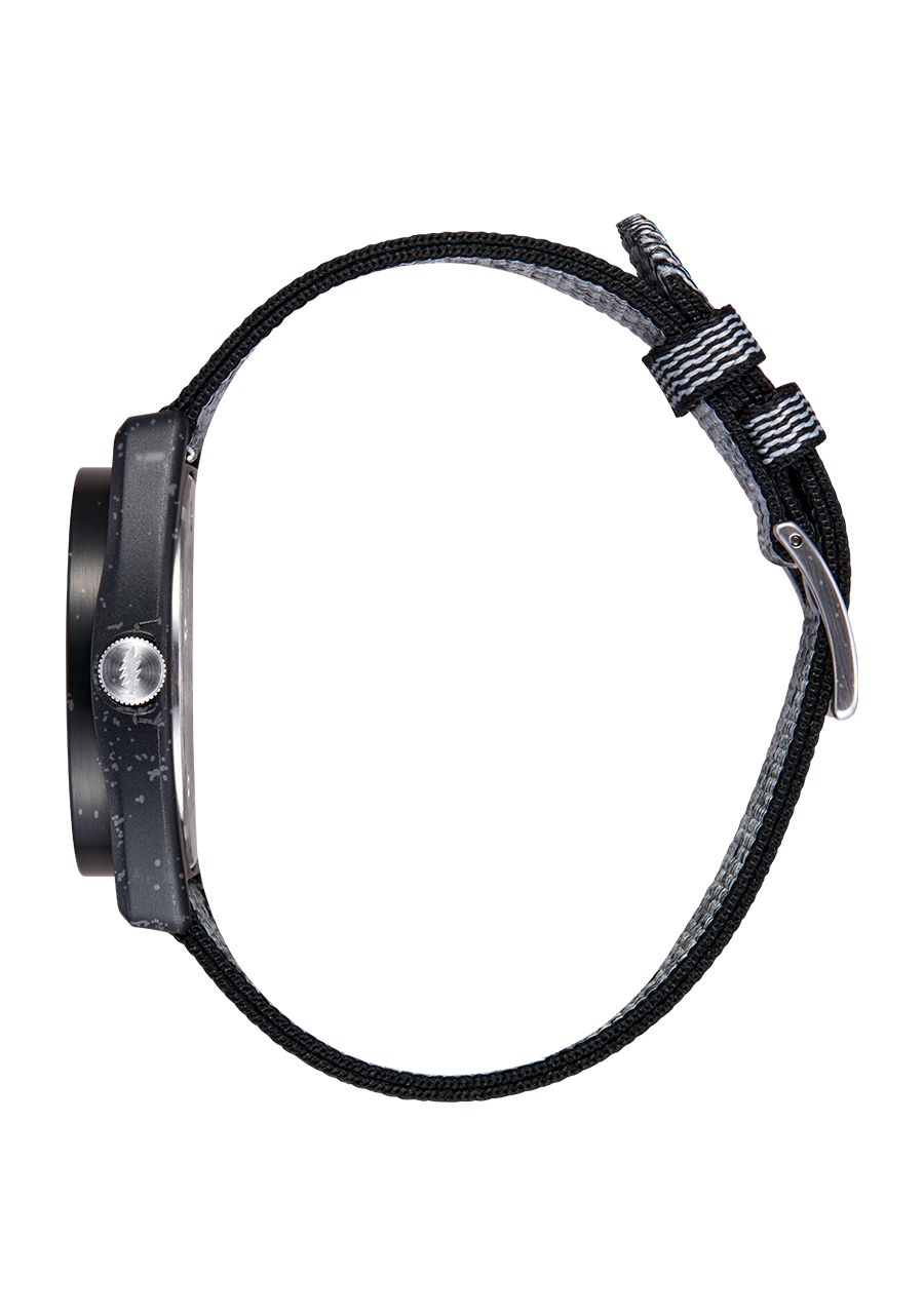 Custom 36mm recycled ocean plastic injection molded case with stainless steel case back.