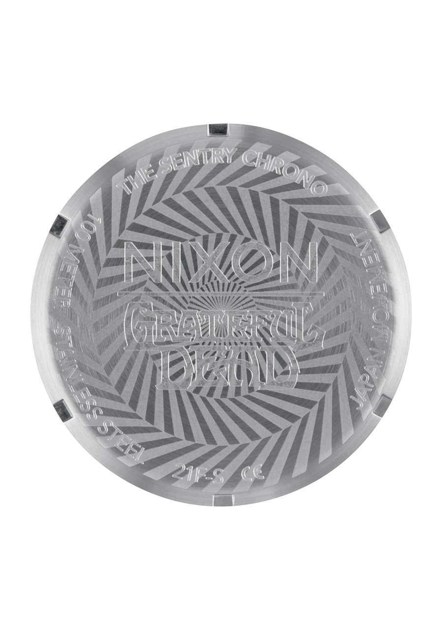 Tripling down with the Dead. Anything but standard, this custom-built Grateful Dead Sentry Chrono strikes a rugged balance of technical functionality and Stealie style. The three, 3D Steal Your Face subdials are individually applied to the custom etched psychedelic texture on the face to create a six-hand chronograph to be grateful for. Give your skulls a new set of legs and switch styles by swapping bands. Go from stainless steel to embossed leather in a snap to unleash a new look that comes included.