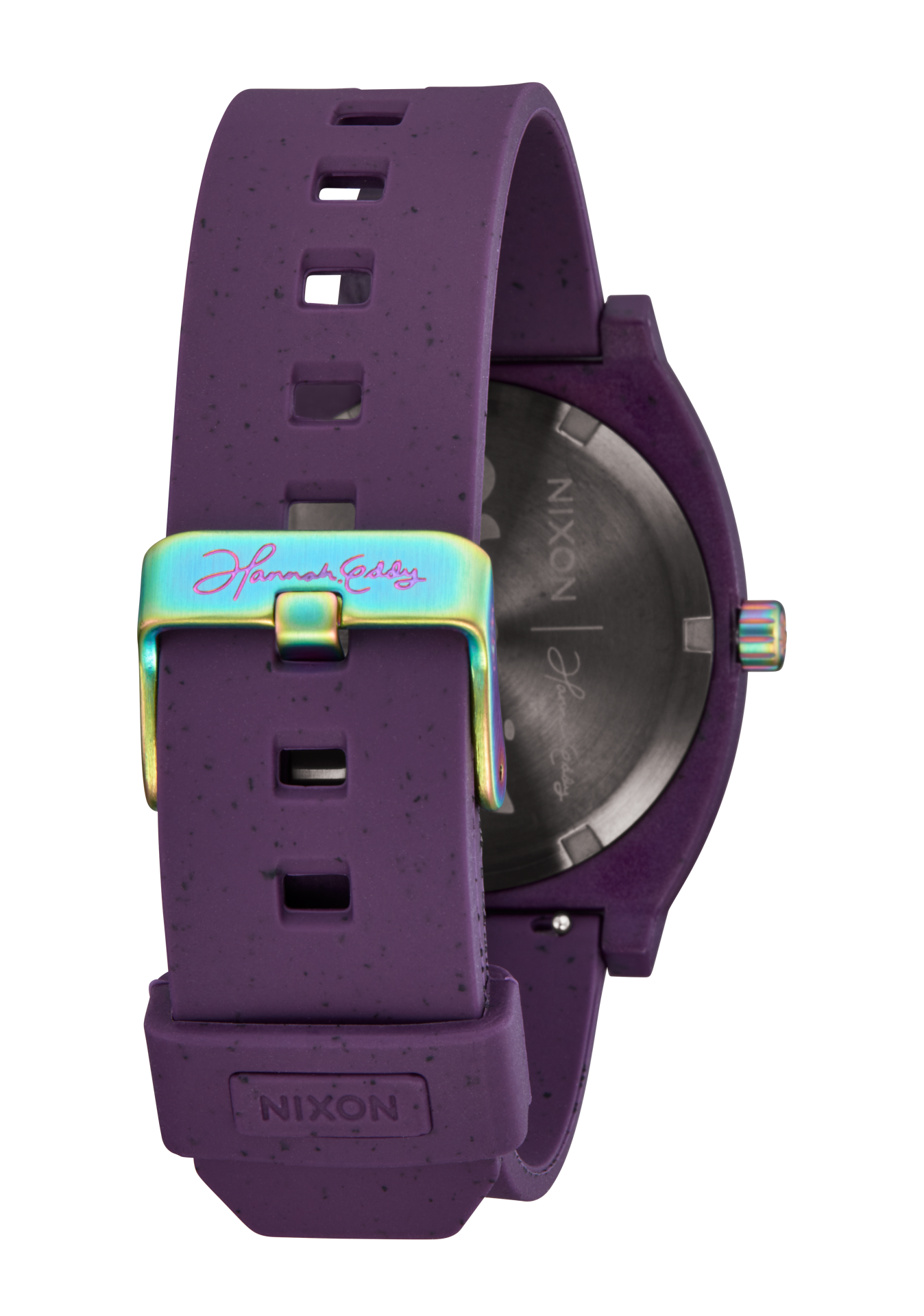 39.5mm recycled plastic watch case and solid steel fixed bezel with a 100 meter / 10 ATM water rating. Includes a hardened mineral crystal, triple gasket stainless steel crown, stainless steel screw down caseback and spring pin lugs.