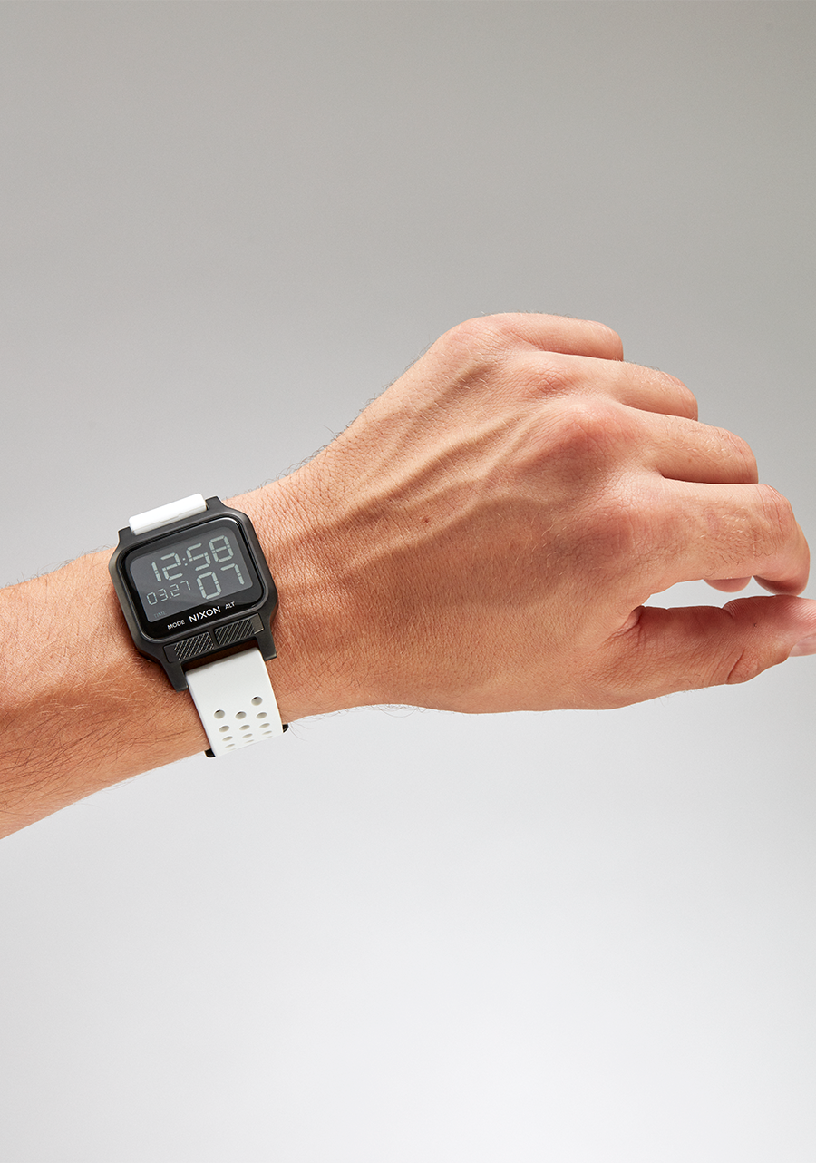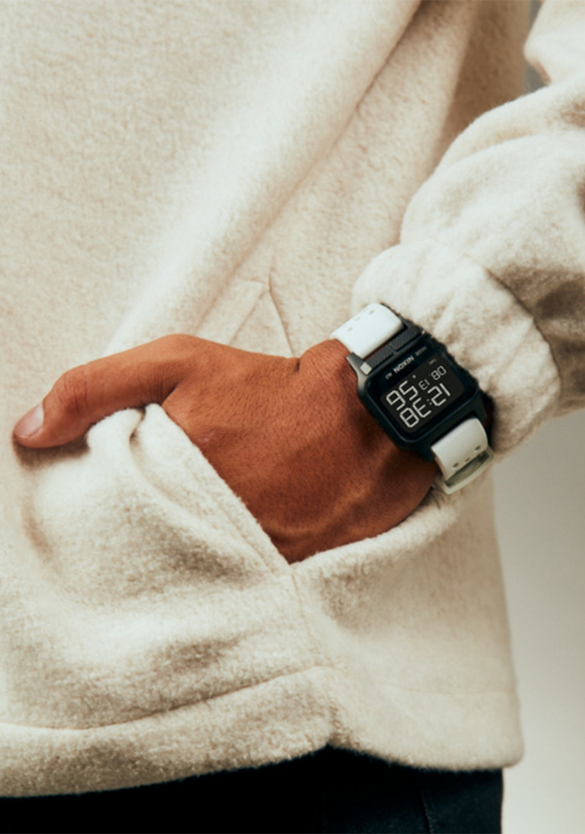 The Nixon Heat watch offers athletes and surfers multiple timer options, a chronograph, and a Final Countdown timer with a 60-second SEND notification to enhance performance during training sessions. Additionally, it features a custom LCD module and a rugged yet slim design to withstand rigorous conditions.