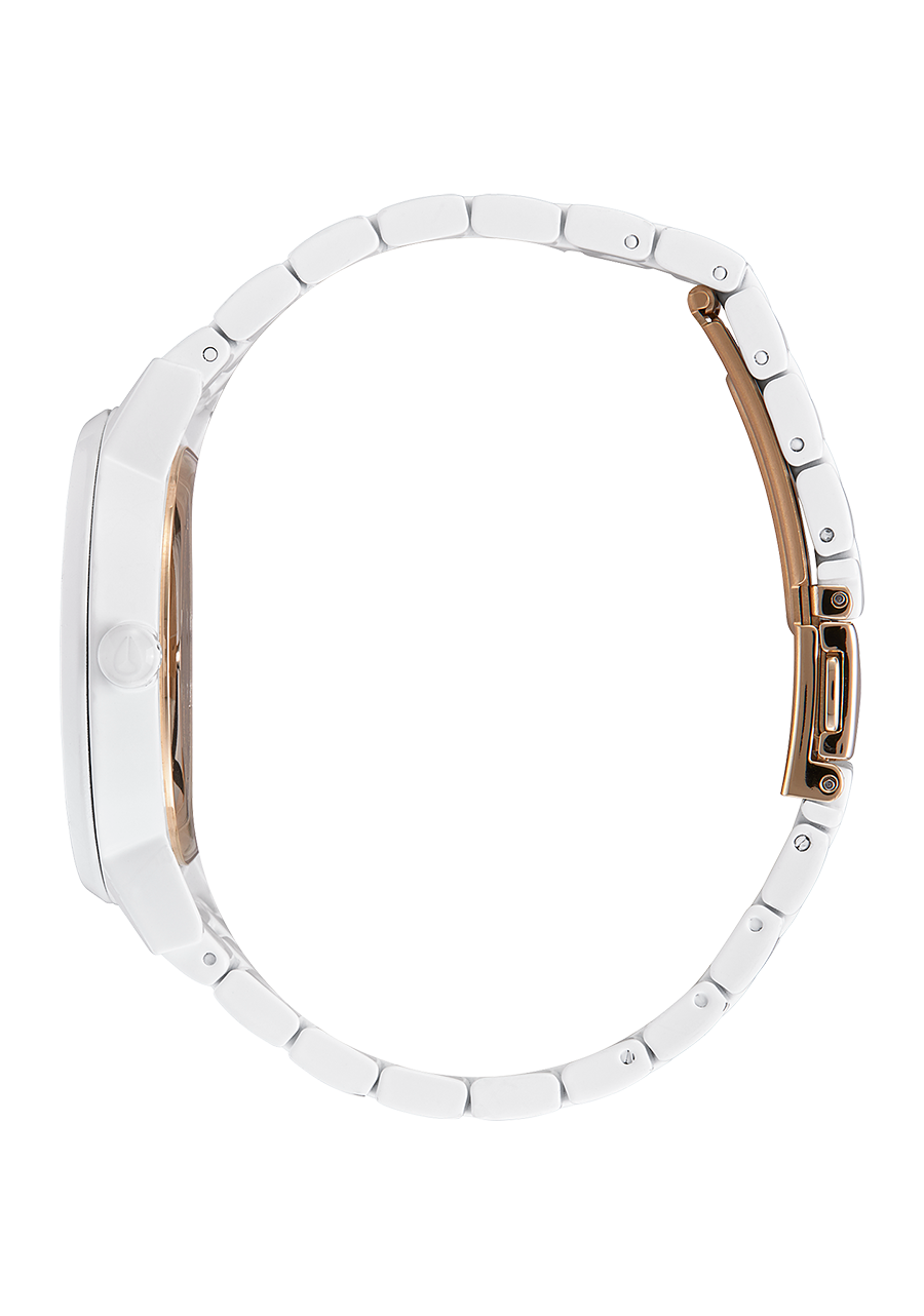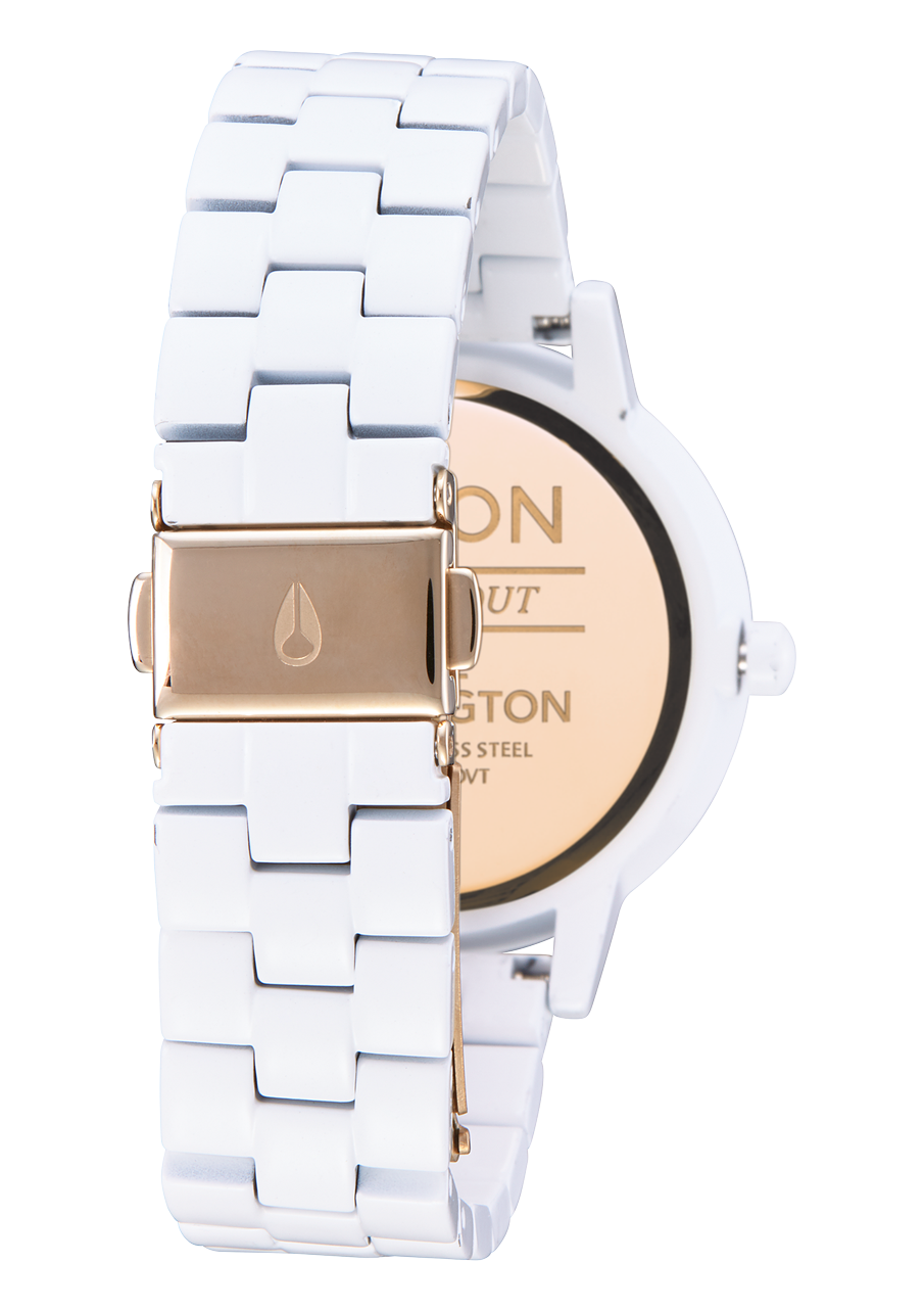 37 mm, 50 meter/5 ATM solid stainless steel case with a hardened mineral crystal, stainless steel snap fit caseback and spring pin lugs.