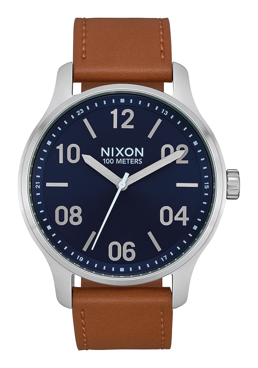 The Patrol is for those who are on time, all the time. 24-hour indices on the inner bezel surround pronounced numerical markers on the face. It's got a slim profile paired with a genuine leather band that's a modern take on a classic field watch.