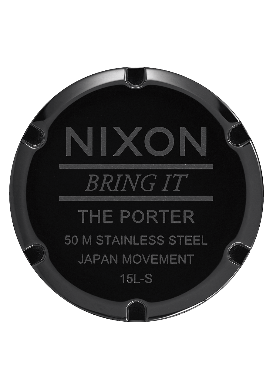 The case of the Nixon Porter Leather is made from custom stainless steel, while the strap is made from leather. To care for the leather band, first wipe away any dust with a dry microfiber cloth. Then get the cloth slightly damp and gently wipe away any dirt from the strap. Finally, let the strap air dry. For more information on cleaning leather watch straps, visit our blog.