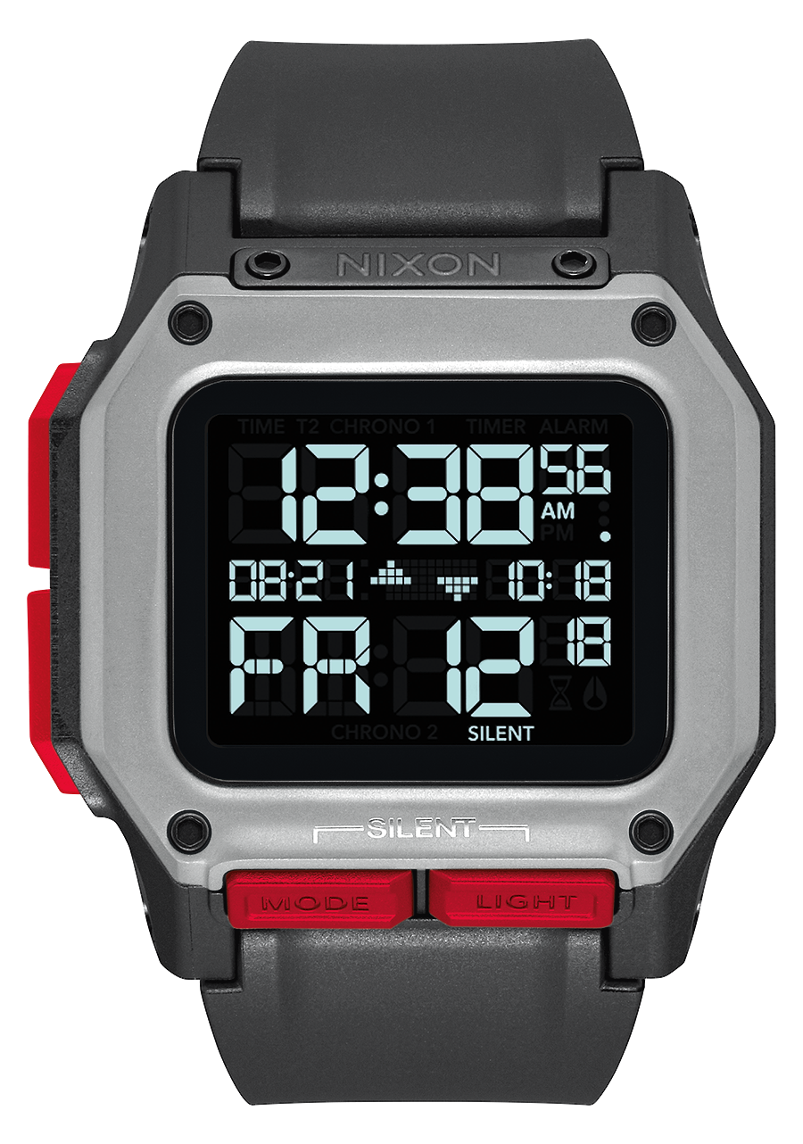 The Nixon Regulus comes with dual chronograph timers, three independent alarms, a silent mode, adjustable LED backlight, and is water resistant.