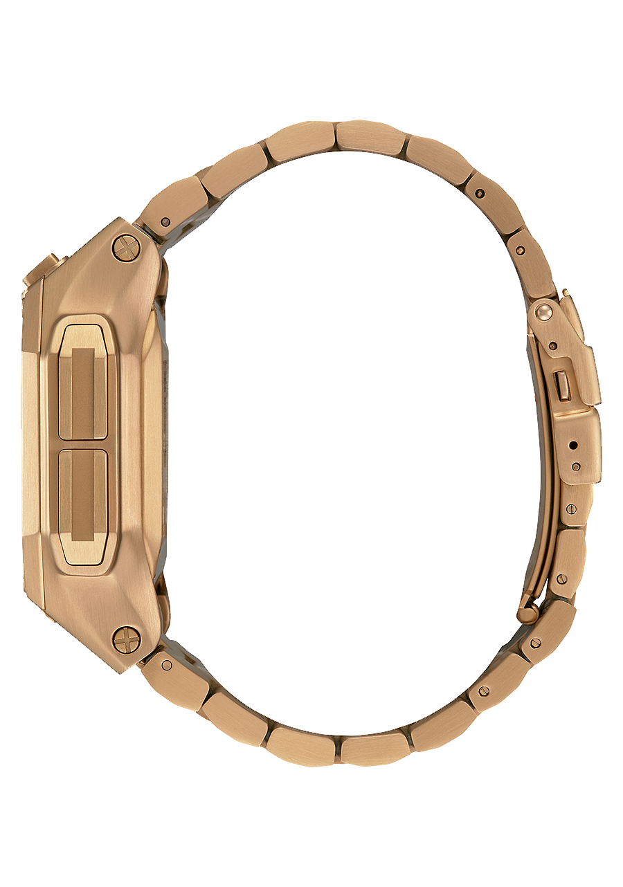 46mm custom injection molded stainless steel case with a 100 meter / 10 ATM water rating. Custom digital LCD module encased in a protective PU jacket and Poron foam padding for super tough shock absorption and durability. Comes with stainless steel pushers located at 6 and 9 o'clock, hardened mineral crystal, stainless steel bezel, solid stainless steel screw down caseback and screw pins.