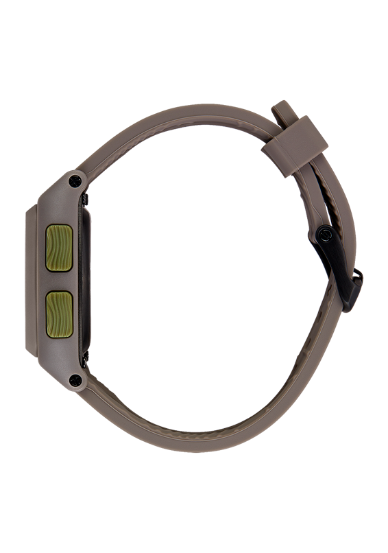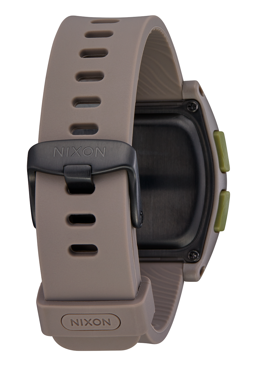 Custom digital module with pre-programmed tide information for 550 beaches around the world. Functions include time of day (12 hour or 24 hour), date, sunrise / sunset data, future and past tide, dual time, 3 types of alarms, countdown timer, wave counter, chronograph and an EL backlight.