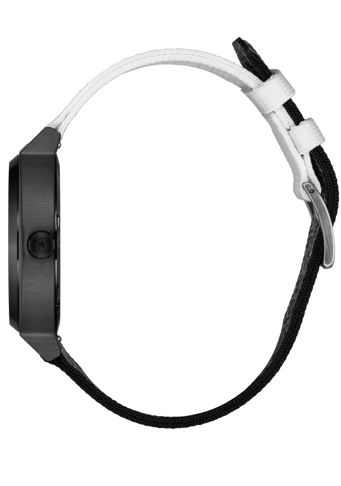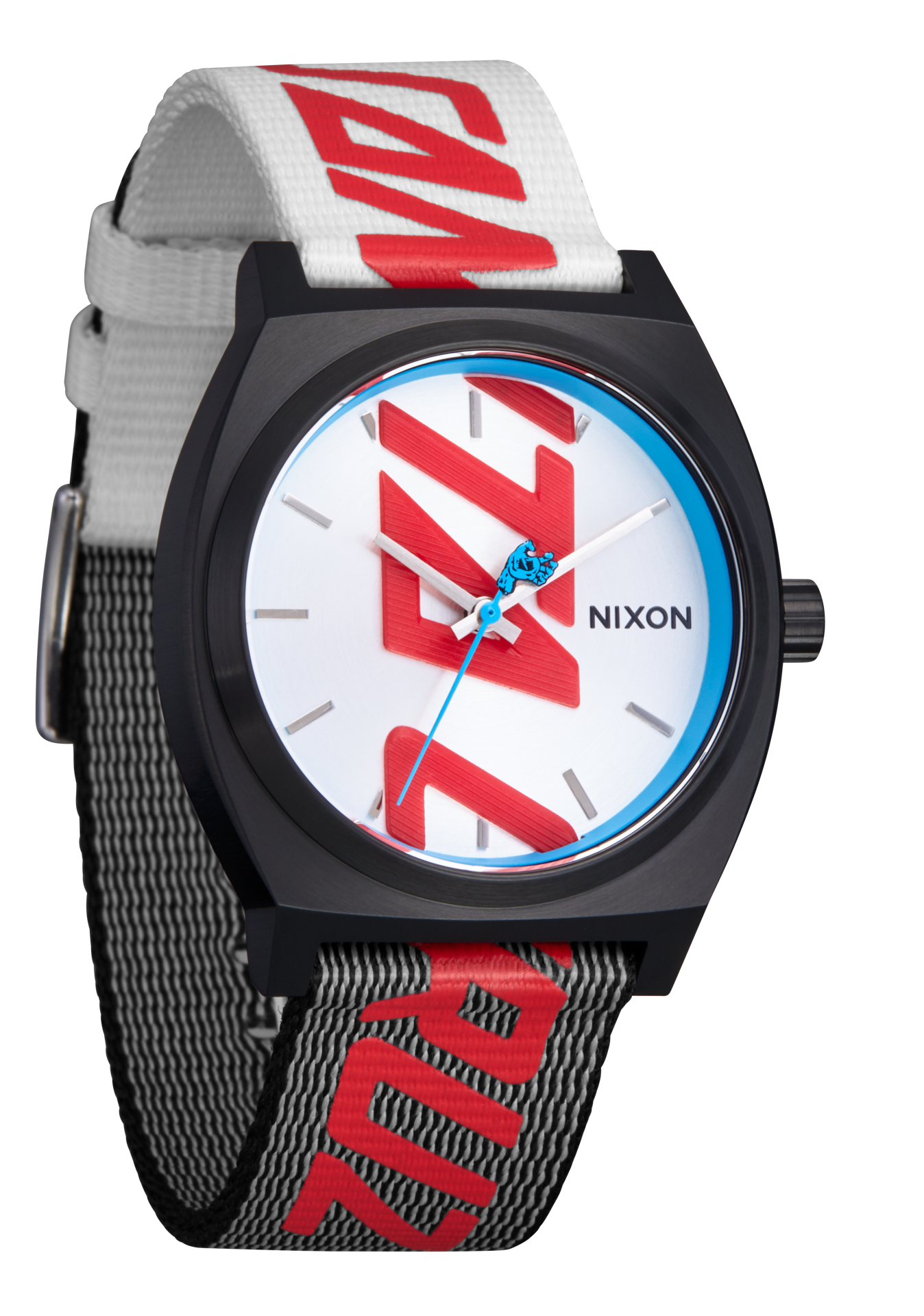 20mm polyester watch band with Santa Cruz run-through logo, quick release band attachment and a stainless steel buckle.
