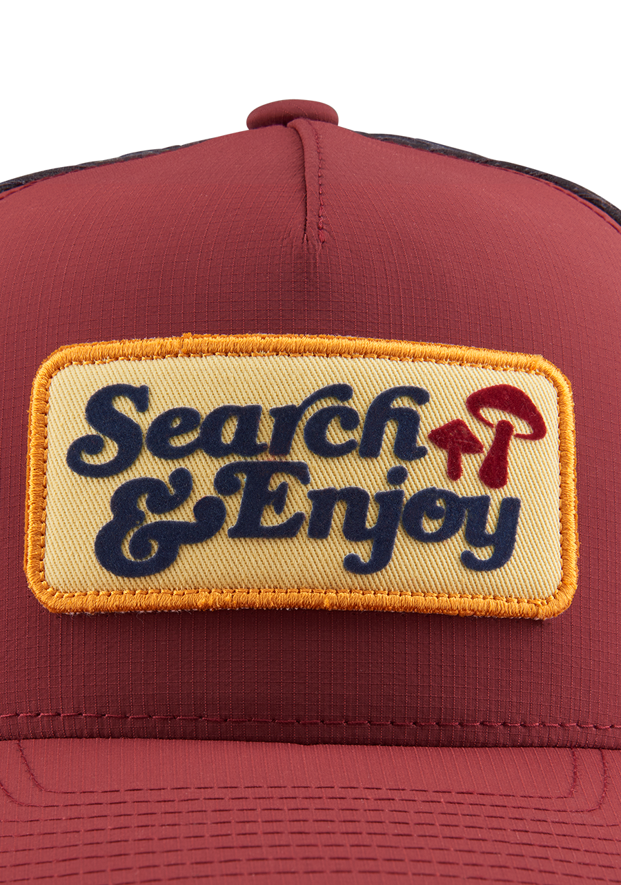 A subtle reminder to enjoy the journey, the Search & Enjoy trucker hat keeps your adventure on track regardless of how lost you get. The deep fit and curved bill will help you stay focused on what's ahead while keeping you cool by letting the air flow freely.