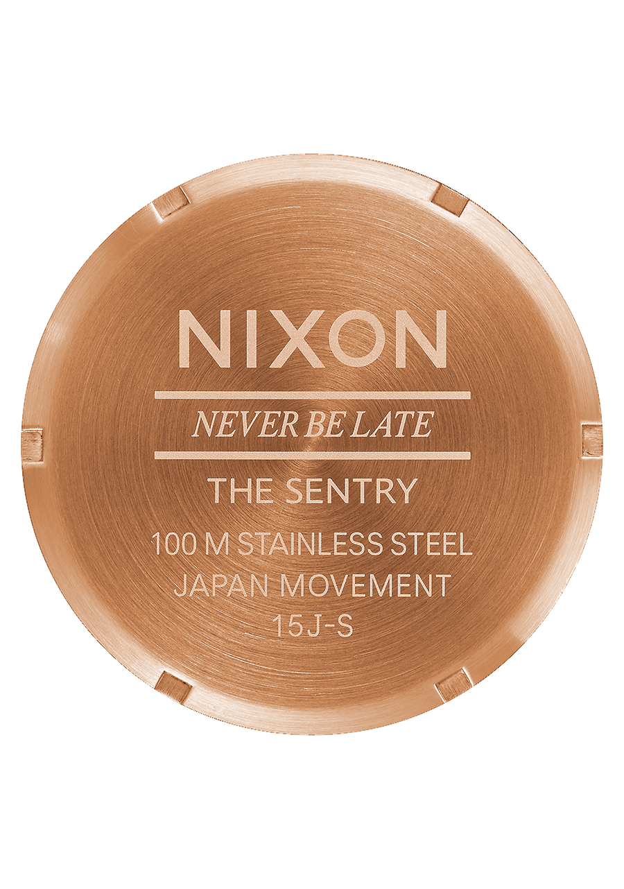 The Sentry Leather watch features a solid stainless steel case paired with a genuine leather strap. To care for the leather band, first wipe away any dust with a dry microfiber cloth. Then get the cloth slightly damp and gently wipe the strap. Lay the strap out to dry to complete the cleaning process. Visit the blog for more information.