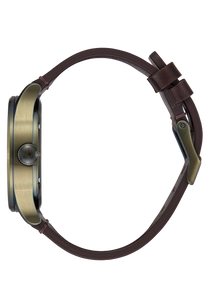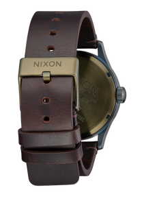 42mm custom solid stainless steel case with a 100 meter / 10 ATM water rating. Comes with a hardened mineral crystal, triple gasket crown with enamel fill, stainless steel screw down caseback and spring pin lugs.