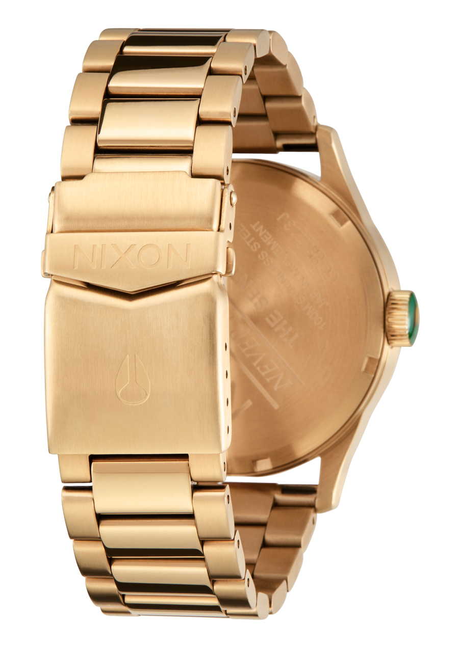 The Nixon Sentry Stainless Steel Watch is water resistant with a rating of 100 meters / 10 ATM. It is suitable for activities like swimming and surfing.