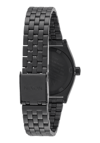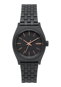 The Nixon Small Time Teller watch is water resistant with a rating of 100 meters / 10 ATM, making it suitable for activities like swimming and showering.