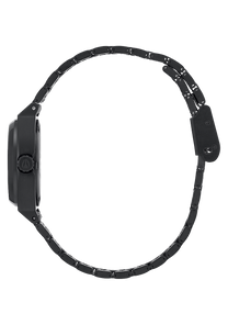 The Small Time Teller bracelet watch features a deployant clasp for a secure fit. This type of clasp allows the watch to open and close easily while providing a snug fit around the wrist. It also ships with a special tool that can be used to adjust the size of the bracelet. Learn more about resizing this watch at our blog.