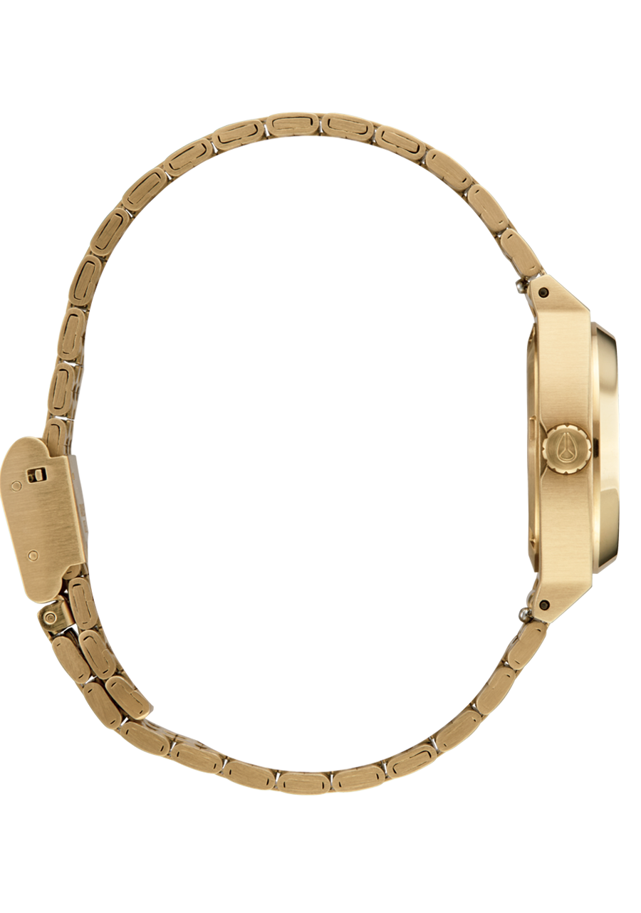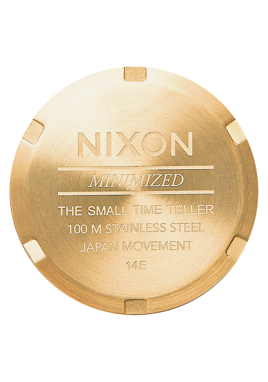 The Nixon Small Time Teller watch is water resistant with a rating of 100 meters / 10 ATM, making it suitable for activities like swimming and showering.