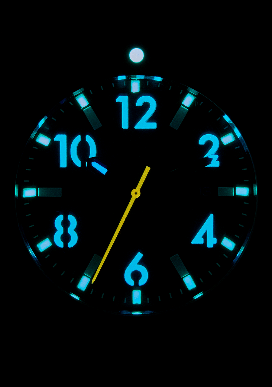 2-layer die-cut dial with a Swiss Super-LumiNova® underdial that shines bright when you're in dark conditions.