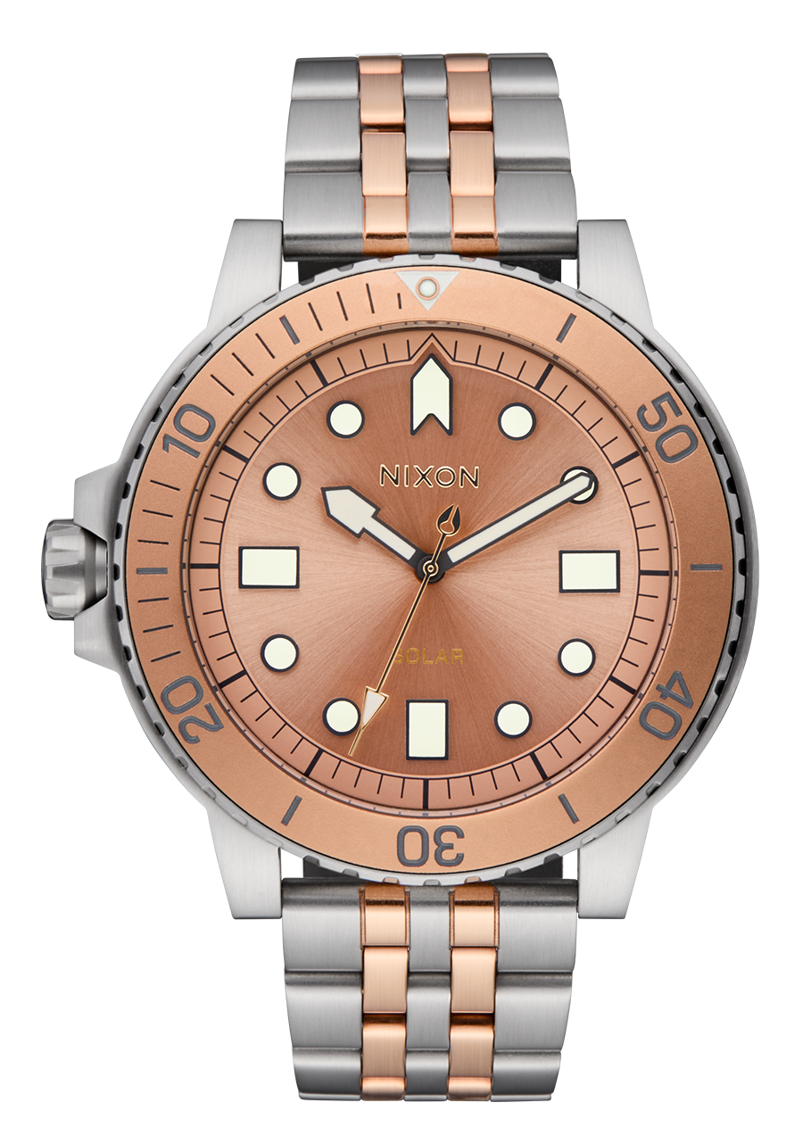 The Nixon Stinger 44 features luminous hands and indices, providing visibility in low light conditions.
