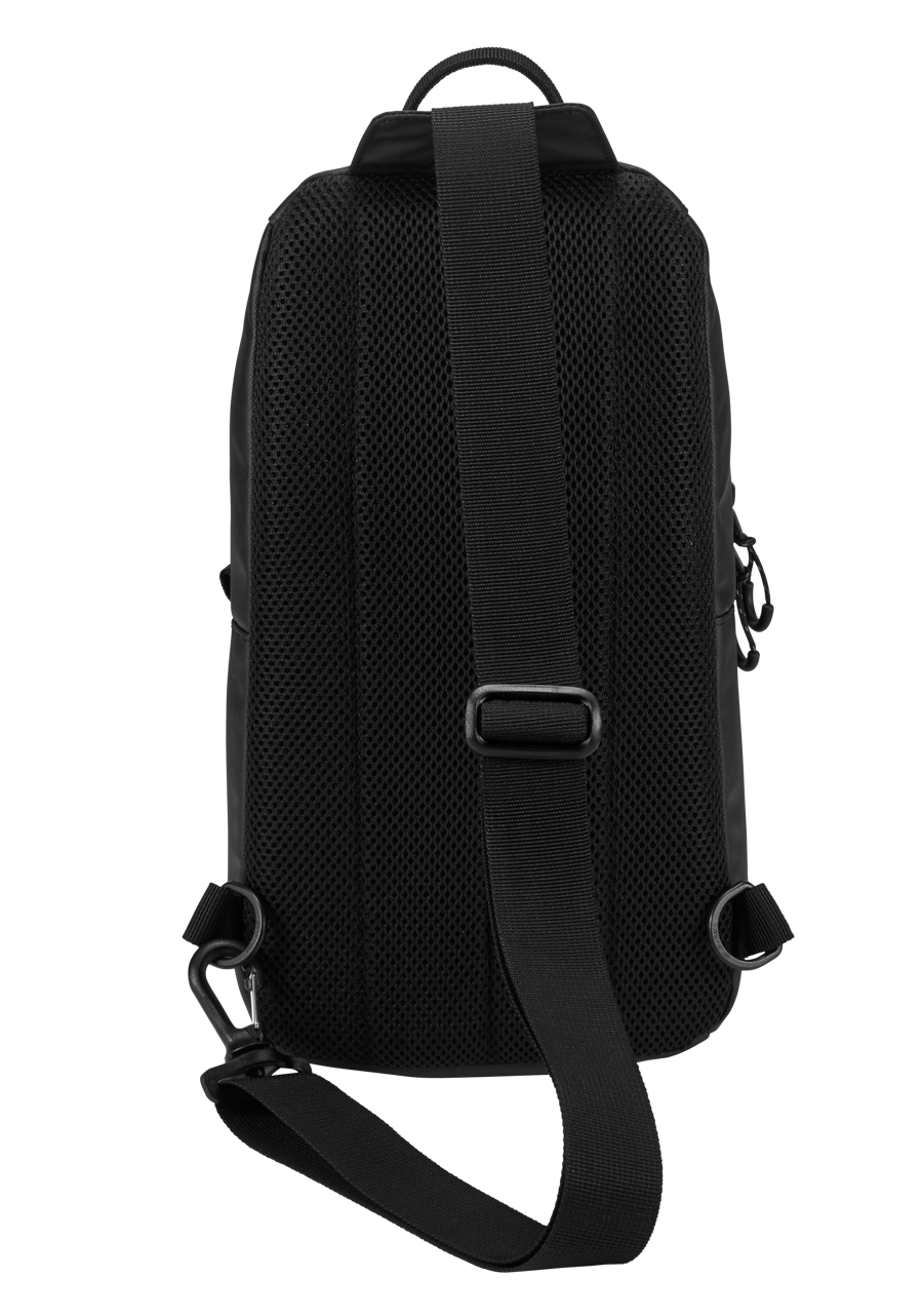 • AmbIdextrous shoulder strap- to be worn crossbody • Interior pocket • Front interior deep stash pocket • Fits up to a 13” tablet • Padded air mesh back for comfort and ventilation - reflectivity
