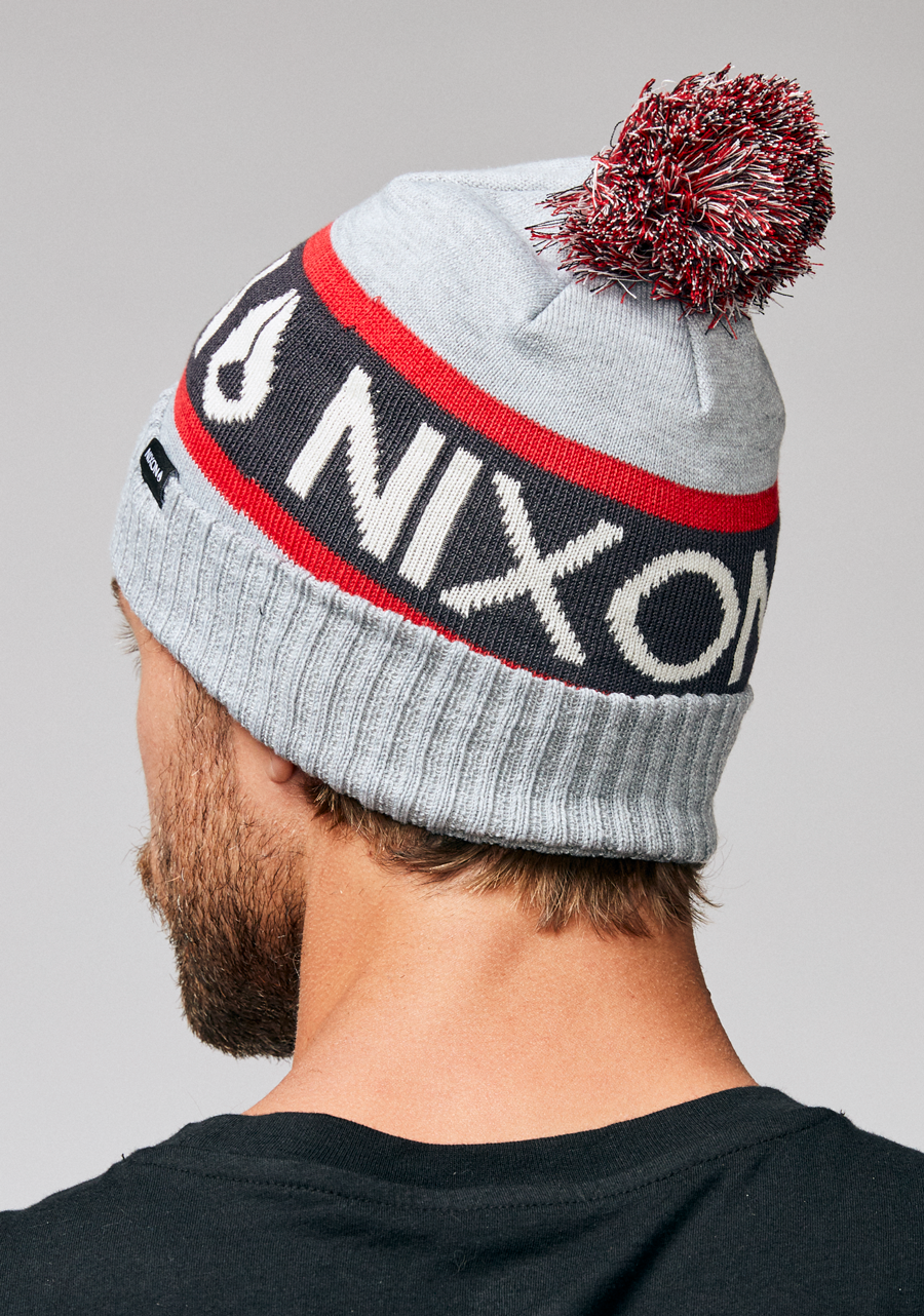 The go-to beanie for cold winters everywhere. Pom and cuff style with jacquard wordmark logo that's as deep as a December snow drift.