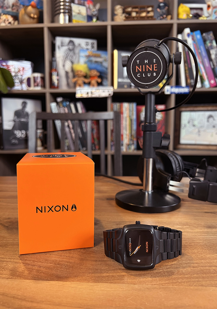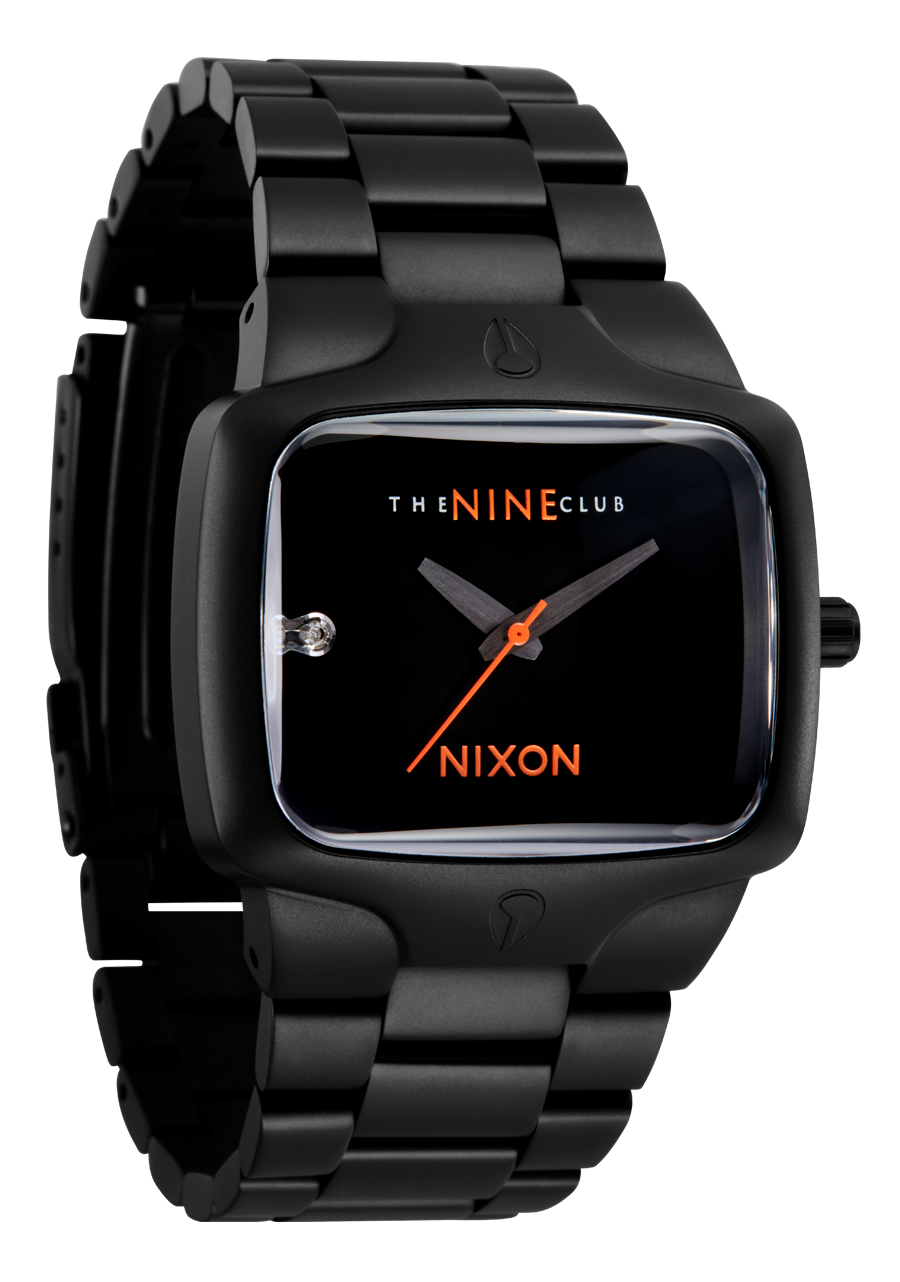 The dial is surrounded by a concave dial ring and includes a real diamond set at 9 o’clock , and custom molded hands.